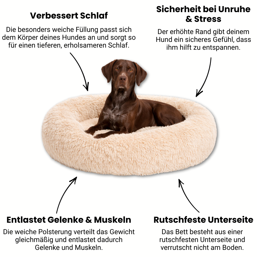 Diese individuelle Anpassung sorgt dafür, dass dein Hund in einer ergonomisch idealen Position ruht, was nicht nur den Schlaf verbessert, sondern auch das Nervensystem beruhigt.