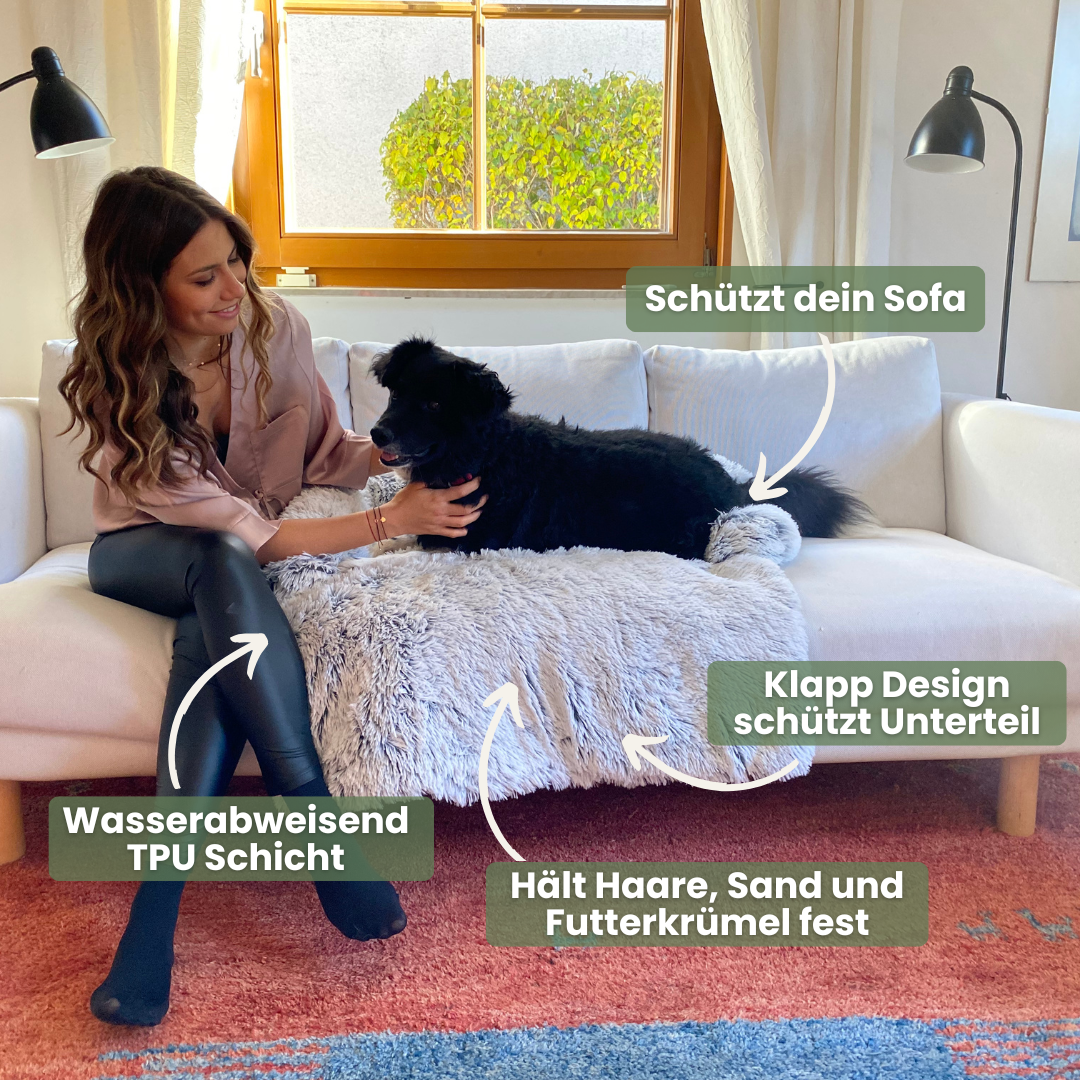 Mit dem Cloufy™ kannst du dein Sofa vor Haaren und Pfotenabdrücken schützen und die Zeit mit deinem Hund genießen!
