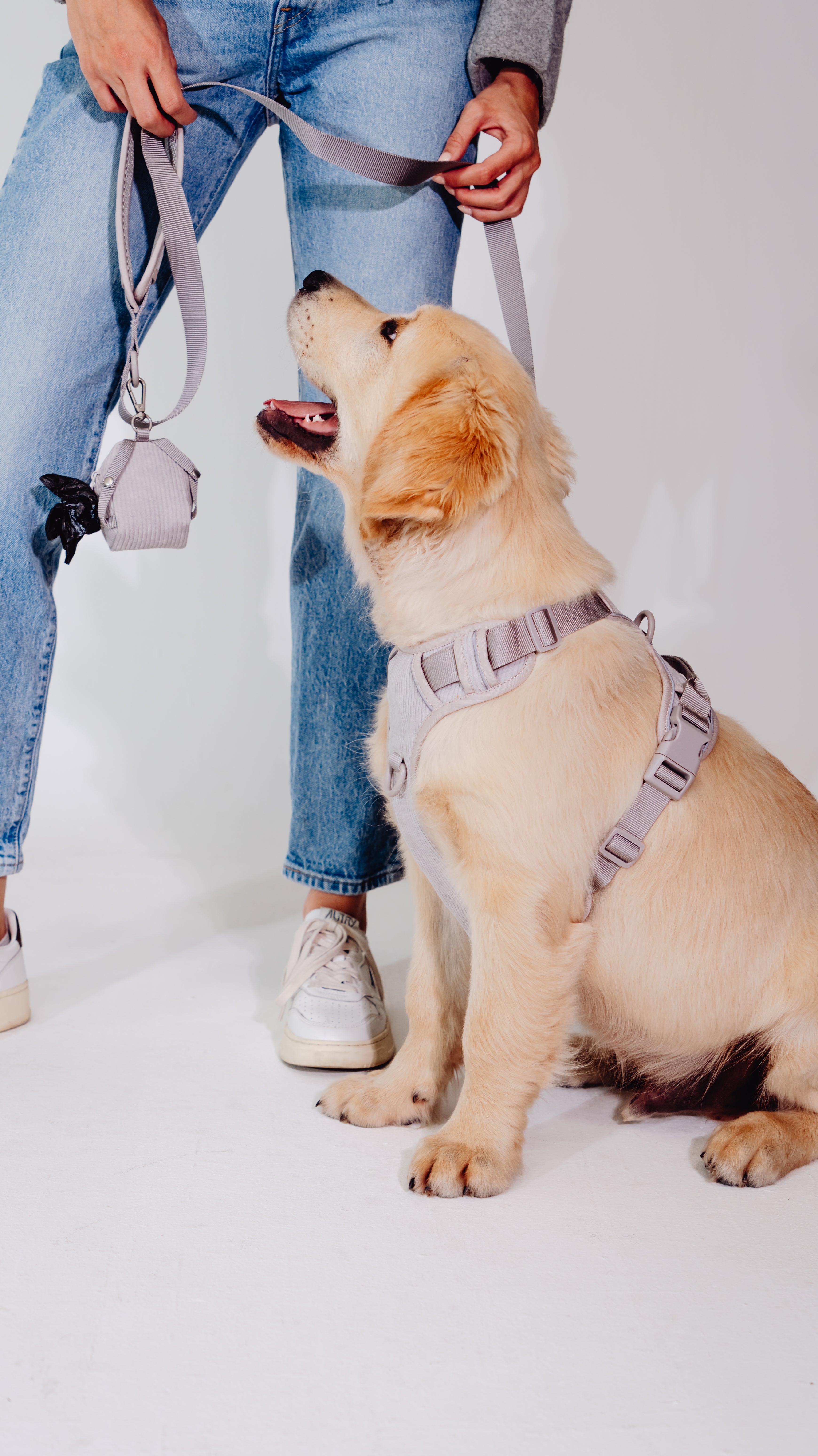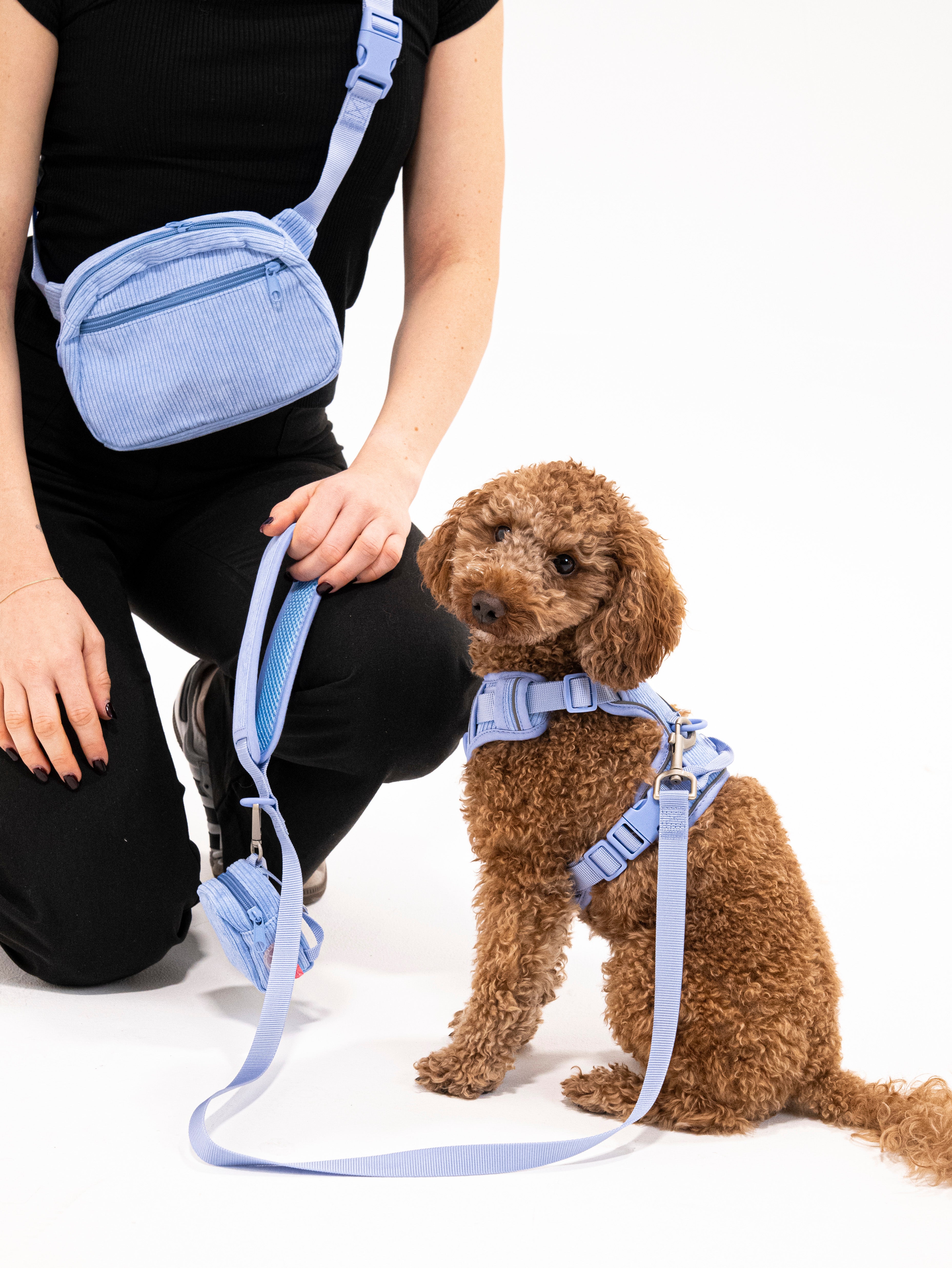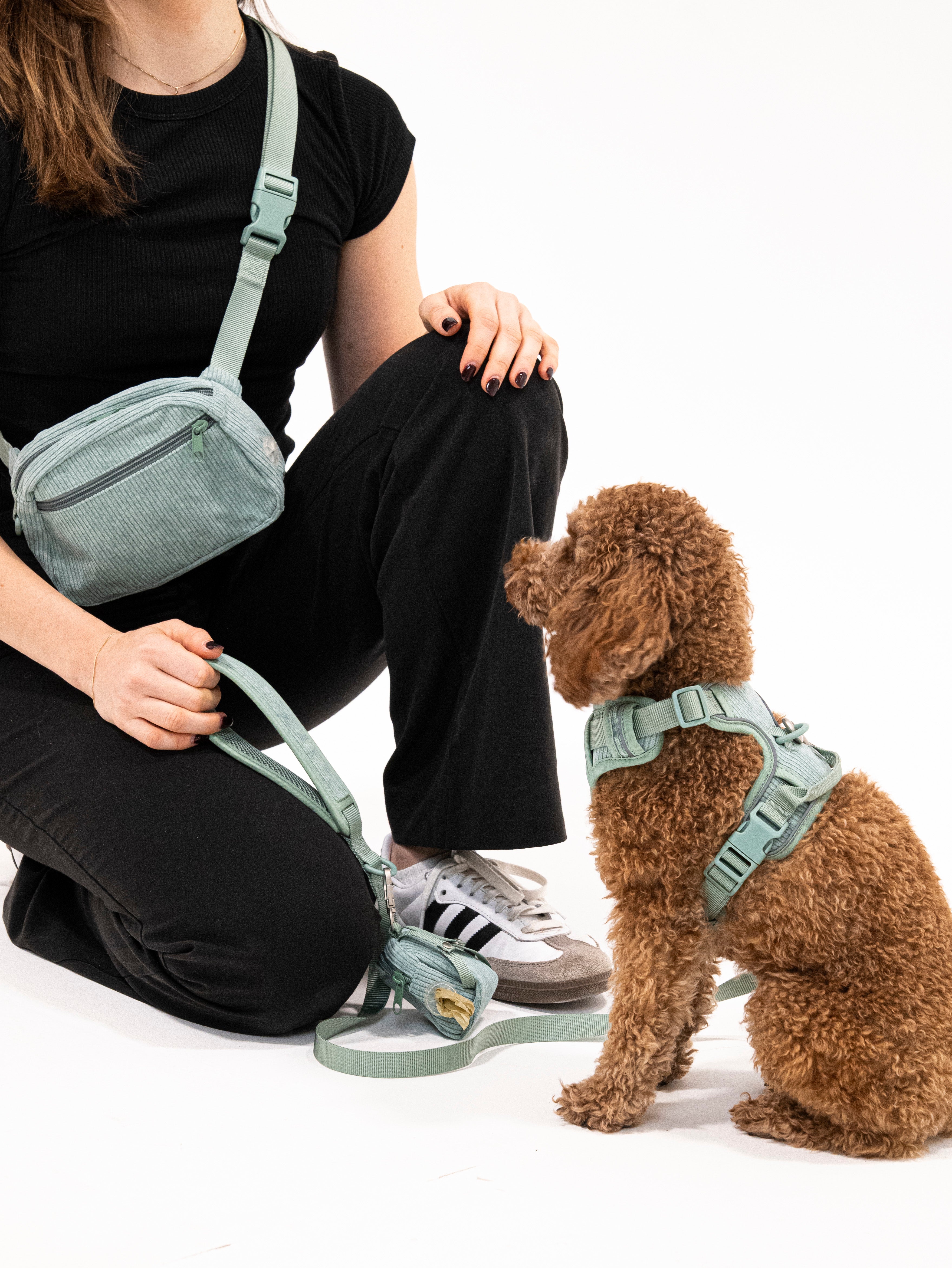 Unser Poop Spender kann angehängt werden aber auch einfach mit den zwei Druckknöpfen an das Geschirr angebracht werden.
