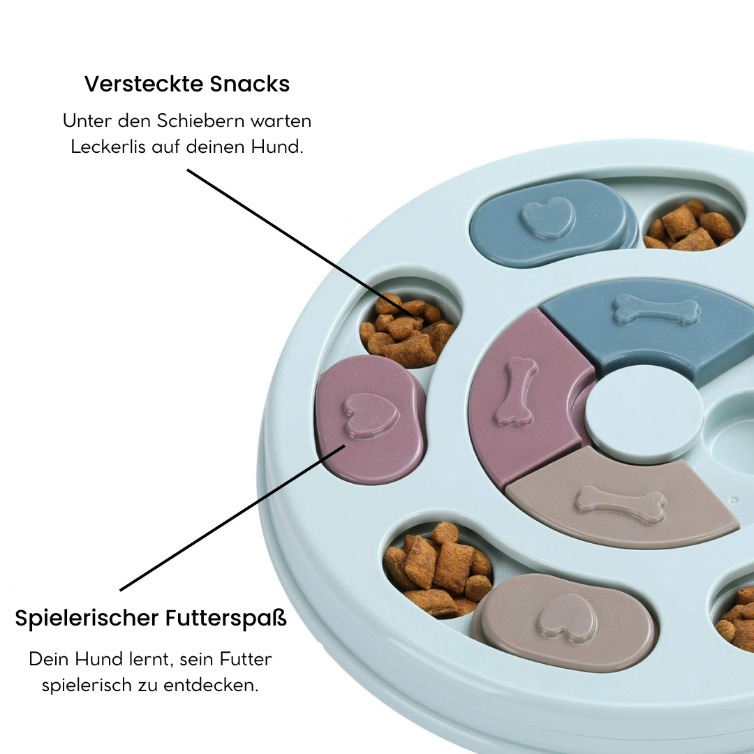 Neigt dein Hund dazu, sein Futter hastig zu verschlingen? Mit dem Puzzle-Napf verlangsamst du die Futteraufnahme ganz automatisch.